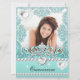 Quinceanera 15 Festa de aniversário Tiara Teal Blue White Silver Pearl Adicione sua foto. Aniversário Elegante de 15 Todas Ocasião Apenas mude de idade. Convites de aniversário de festa Modelo