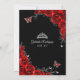 Convite para comemoração de Quinceanera vermelha, preta e prata. Recursos, fontes de script, borboletas prateadas, rosas de aquarela e tiara. Perfeito para uma elegante celebração de glam estilo princesa. Personalize com seus próprios detalhes. Impressos convites Zazzle ou modelo de impressão digital instantânea para download.