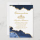 Convite Quinceanera Blue Marble Crown Foto Dourada