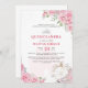 Convite Quinceanera Blush Floral Cor-de-Prata Rosa