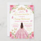 Convite Quinceañera Blush Pink Princess Brunette Girl