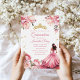 Convite Quinceanera Blush Princesa Rosa, Vestido Tiara