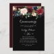 Este convite de Quinceañera, botânico preto, é perfeito para uma festa de aniversário clássica. A design apresenta flores brilhantes, vermelhas, marinhos, azuis e esbranquiçadas radiantes e graciosas pintadas à mão num fundo preto, inspirando beleza natural.