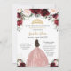 Convite Quinceañera Burgundy Blush Rosa Floral Vestido Dou