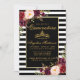 Burgundy Marsala Floral, Dourada Coroa, Black and White Stripes Quinceanera Cartão de Convite