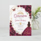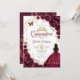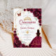 Convite Quinceanera Burgundy Vestido Floral Dourado