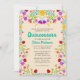 Champanhe bonito e Turquesa Verde Quinceanera Convite para a comemoração de aniversário do 15 da sua filha. Este tema mexicano Quinceañera apresenta flores coloridas de arte folclórica mexicana em vermelho, rosa, roxo e amarelo em um fundo de champanhe. A parte de trás do cartão tem um buquê bonito feito das mesmas flores de fiesta. O modelo está pronto para você personalizar o cartão com todos os seus detalhes pessoais para o seu partido mexicano Fiesta Quinceanera. Procure na nossa loja itens correspondentes e coordenadores.