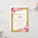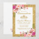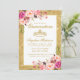 Convite Quinceanera Coroa Rosa Dourada Floral