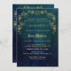 Celebre a sua quinceañera com este elegante convite à noite estrelada que mostra um maravilhoso fundo celeste azul, marinho, verde e teal com estrelas delicadas e delicadas granadas e sujas terras botânicas em matizes douradas. Capacidade de alterar e personalizar todas as seções de texto para atender às suas necessidades. Fácil de preencher modelo. Design mágico perfeito para uma ocasião estéril! De volta com o mesmo fundo da frente e a elegante terra das douradas. Se necessário, você pode selecionar o botão "Editar usando a ferramenta Design" localizado no final das caixas de texto modelo e fazer alterações no estilo, tamanho, cor e posição do texto. O mesmo design de convite em espanhol também está disponível. Parte da nossa coleção "Enchantar a Noite Estelar Celestial", com uma variedade de produtos coordenadores disponíveis. Visite a coleção inteira em: https://www.zazzle.com/collections/enchanting_celestial_starry_night-119778618338709536