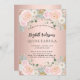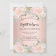 Um convite moderno, elegante e glamoroso para uma Quinceañera, festa de 15 anos. Um fundo de rosa ouro com flores cor-de-rosa claro, rosas. O nome é escrito com uma fonte moderna de letra manuscrita. Personalize e adicione os detalhes da sua festa.