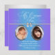 Linda foto de bebê e atual convite para Quinceanera, azul e lavanda roxo. Este doce convite roxo e azul da Quinceanera apresenta quadros ovais elegantes para duas fotos - uma como bebê e a outra corrente. Personalize este convite elegante de lavanda roxo e foto teal Quinceanera adicionando suas fotos, detalhes do evento, estilo da fonte, tamanho da fonte e cor e texto. Observe que todos os designs de cartas e convites que você encontrará no Zazzle são gráficos impressos sem joias reais, arcos, levantados, gravados em relevo ou peças ou peças adicionadas.
