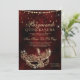 Convite quinceanera de ouro vermelho-quic com máscara de m