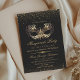 Na moda moderno convite para 15 de Mascarada. A caligrafia elegante escrita à mão combinada com uma fonte moderna sobre um fundo preto escuro complementa-se e parece harmoniosa ao mesmo tempo.