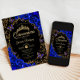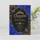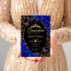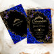 Convite para comemoração da Quinceanera azul-real, ouro e preto. Recursos, fontes de script, borboletas douradas, rosas de aquarela e tiara. Perfeito para uma elegante celebração de glam estilo princesa. Personalize com seus próprios detalhes. Impressos convites Zazzle ou modelo de impressão digital instantânea para download.
