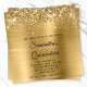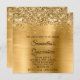 Um glamouroso convite de 15 de quinceañera. Brilhante de ouro cintilante contra uma imagem gráfica de folha metálica fina e brilhante, de coordenação. O texto pode ser personalizado. Todo o brilho e ouro neste design feminino moderno são criados com gráficos impressos de arte digital.