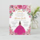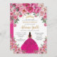Convite Quinceanera Dourada Floral cor-de-rosa Fuchsia XV