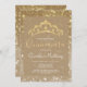 Convite Quinceanera Dourada Sparkly Confetti com Tiara