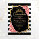 Convite Quinceanera - Dourado Preto - Cor-de-rosa