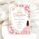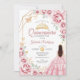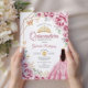 Convite Quinceanera Dourado Vestido Rosa
