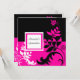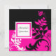 Elegante rosa quente e vinha floral negra Quinceanera convite.