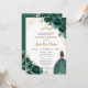 Convite Quinceañera Emerald Green Floral Princess Español
