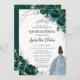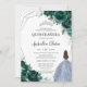 Convite Quinceañera Emerald Green Floral Vestido Azul