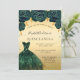 Convite Quinceanera emerald green gold dress floral