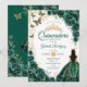 Convite Quinceanera Emerald Green Gold Floral