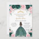 Convite Quinceañera Emerald Green Pink Princesa Floral