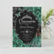 Convite para comemoração de Quinceanera, verde-esmeralda, preto e prateado. Apresenta uma garota morena em vestidos de capa de bola, fonte de script, borboletas, rosas de aquarela e tiara. Perfeito para uma elegante celebração de glam estilo princesa. Personalize com seus próprios detalhes. Impressos convites Zazzle ou modelo de impressão digital instantânea para download.