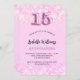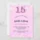Um convite moderno, na moda e glamouroso para a Quinceañera, festa de aniversário 15. Um fundo cor-de-rosa com confete. O nome é escrito com um moderno estilo escrito à mão. Personalize e adicione os detalhes da sua festa. O número 15 é escrito com uma fonte de estilo balão, script.