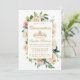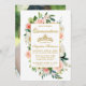O moderno Elegante, Quinceanera Watercolor Pink Blush Floral e Dourado Cartão de Convite Fotográfico inclui rosas rosa, flores brancas e belo verde botânico. Foto de volta.