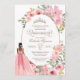 Quinceañera convida com flores cor-de-água cor-de-rosa-penteada e uma garota com um lindo vestido. Verifique o compro para este convite com garotas com diferentes cores de cabelo, tons de pele e mais variações.