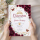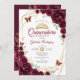 Convite Quinceanera Floral Dourada Burgundy
