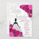 Convite Quinceanera Floral Elegante Fuchsia Rosa