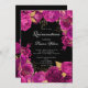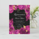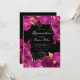 Flores exclusivas, Douradas e cor-de-rosa-quente, como uma fronteira ao redor, juntamente com um roteiro elegante em fundo preto para o seu perfeito convite de aniversário. Você pode escolher entre uma opção de foto ou não foto. Veja na nossa loja mais itens desta coleção.