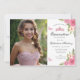 Convite Floral de Quinceanera Foto Cor-de-Rosa Blush - convite elegante apresenta duas das suas fotos favoritas, florais rosa adoráveis e verde com tipografia de escrita de caligrafia.