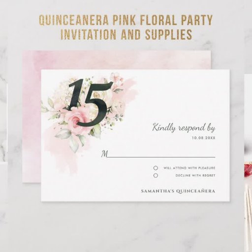 Convite Quinceanera Floral Moderna 15 de Aniversário Rosa