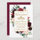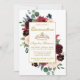 O moderno Elegante, Quinceanera Watercolor Floral e o Cartão de Convite Dourado incluem rosas burguentos, rosas cor-de-rosa, flores vermelhas, flores azuis e belo verde botânico.