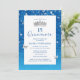 Personalize seus próprios convites elegantes da quinceanera projetados em um modelo moderno em bonitos óculos de azul real escuro, azul claro e prata. A arte original também apresenta um padrão de rosas aquáticas, uma rainha/princesa coroa, assim como um confete borboleta, que pode ser selecionado em diferentes cores para tornar sua festa de aniversário 15 mais personalizada e inesquecível. A caligrafia do roteiro azul-marinho diz "Quinceañera", mas o grande número junto com o texto pode ser alterado para ler "16 doces" ou qualquer frase mais adequada para sua celebração. Você gostaria de inserir uma foto de vestido Mis Quince Anos ou incluir detalhes adicionais para seu evento? Com muito espaço no verso, tudo isso é possível. Se é o desejo do seu coração de jogar uma festa mexicana memorável com uma chama elegante, estes convites florais únicos da quinceanera podem servir esse propósito. Vestidos de palhaço estão disponíveis em tantos tons de cores adoráveis, e você pode até ter cores de tema de festa de aniversário alternativas em mente. A boa notícia é que os elementos de arte podem ser personalizados de acordo com o seu gosto. Você pode até reposicionar, excluir ou alterar peças. Personalize ainda mais o design para revelar opções personalizadas de "escolha sua própria cor" para a coroa tiara, borboletas e rosas... e selecione entre diferentes acabamentos finos de metal brilhante, como ouro, rosa e brilho de diamante. Com estes convites da quinceanera moderna, as possibilidades criativas são infinitas! Categoria: convites para modelo quinceanera; convites para quinceanera doce 16; e convites para quinceanera azul real. Legal cores temáticas da paleta quinceañera: azul real, cobalto marinho escuro, azul de tiffany, turquesa, azul claro em pó, branco e prata (com opções de sotaque ouro e rosa).