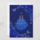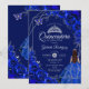 Convite Quinceanera Floral Royal Blue Silver Dress