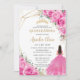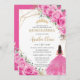 Convite Quinceañera Fuchsia Rosa Princesa Floral Dourada