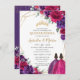 Convite Quinceañera Fuchsia Rosas Florais Roxos Escuros Gê