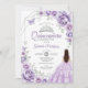 Convite Quinceanera Lilpúrpura Prateada Floral