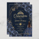 Convite Quinceanera Marinho Azul Borboleta Dourada Vestido