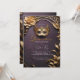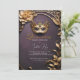 Faça sua Quinceañera realmente encantadora com este elegante convite para mascarada. O design apresenta uma luxuosa púrpura real e uma paleta dourada, lembrando uma bola mágica de mascarada. A folhagem do ouro falso 3D adiciona um toque de glamour à sua celebração.