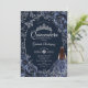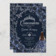 Navy and silver Quinceanera celebration invitation. Features brunette girl in ball gown dress, silver butterflies, watercolor roses tiara and script font. Perfect for an elegant princess style glam celebration. Personalize with your own details. Printed Zazzle invitations or instant download digital printable template.