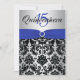 Este elegante e moderno convite para a Quinceanera, azul real, cinza prateada e damasco preto, tem uma fita IMPRESSA e uma joia de diamante IMPRESSA.