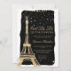 Uma QUINCEAÑERA moderna, cômica e glamourosa, com um francês francês de brilho dourado desenhado à mão, chamado Torre Eiffel, com faíscas de diamante de brilho dourado rosa no fundo da quinceanera.
