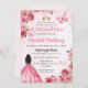 Este convite Quinceanera apresenta elementos em aquarela de um vestido, rosas e borboletas cor-de-rosa.